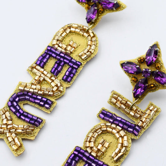 TIGERS GEAUX Beaded Gold & Purple Earrings T18