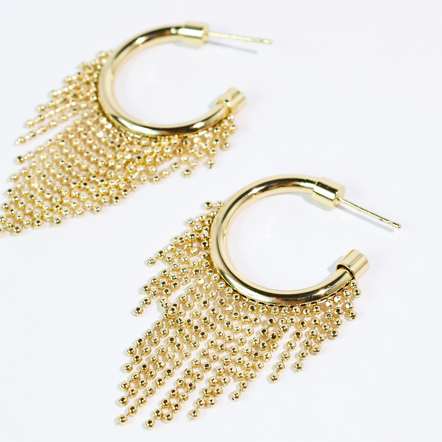 - little bold, a lot of sparkle. Feature classic gold hoops finished with delicate dangling bead fringe for the perfect mix of movement and shine.