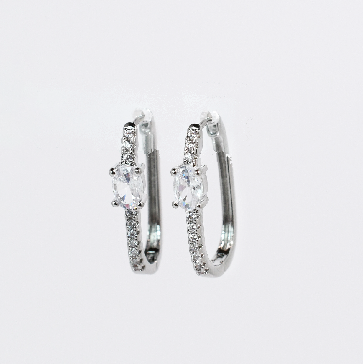 - These elegant silver huge earrings feature a stunning oval cut crystal centerpiece framed by delicate pavé style crystals for extra sparkle.