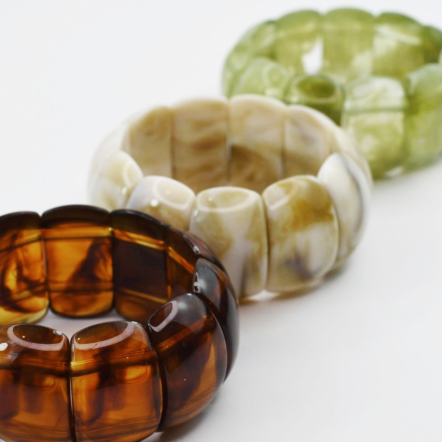 - Crafted from high shine resin with a smooth, marbled finish. The stretch design ensures a comfortable fit, while the chunky silhouette makes it perfect for stacking or wearing solo.