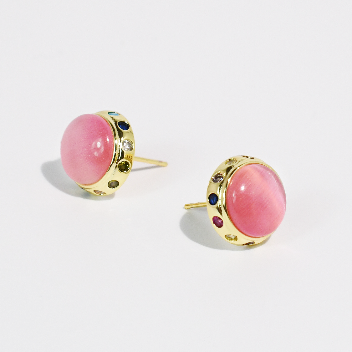 Dainty pink studs with a polished gold edge perfect for everyday wear.